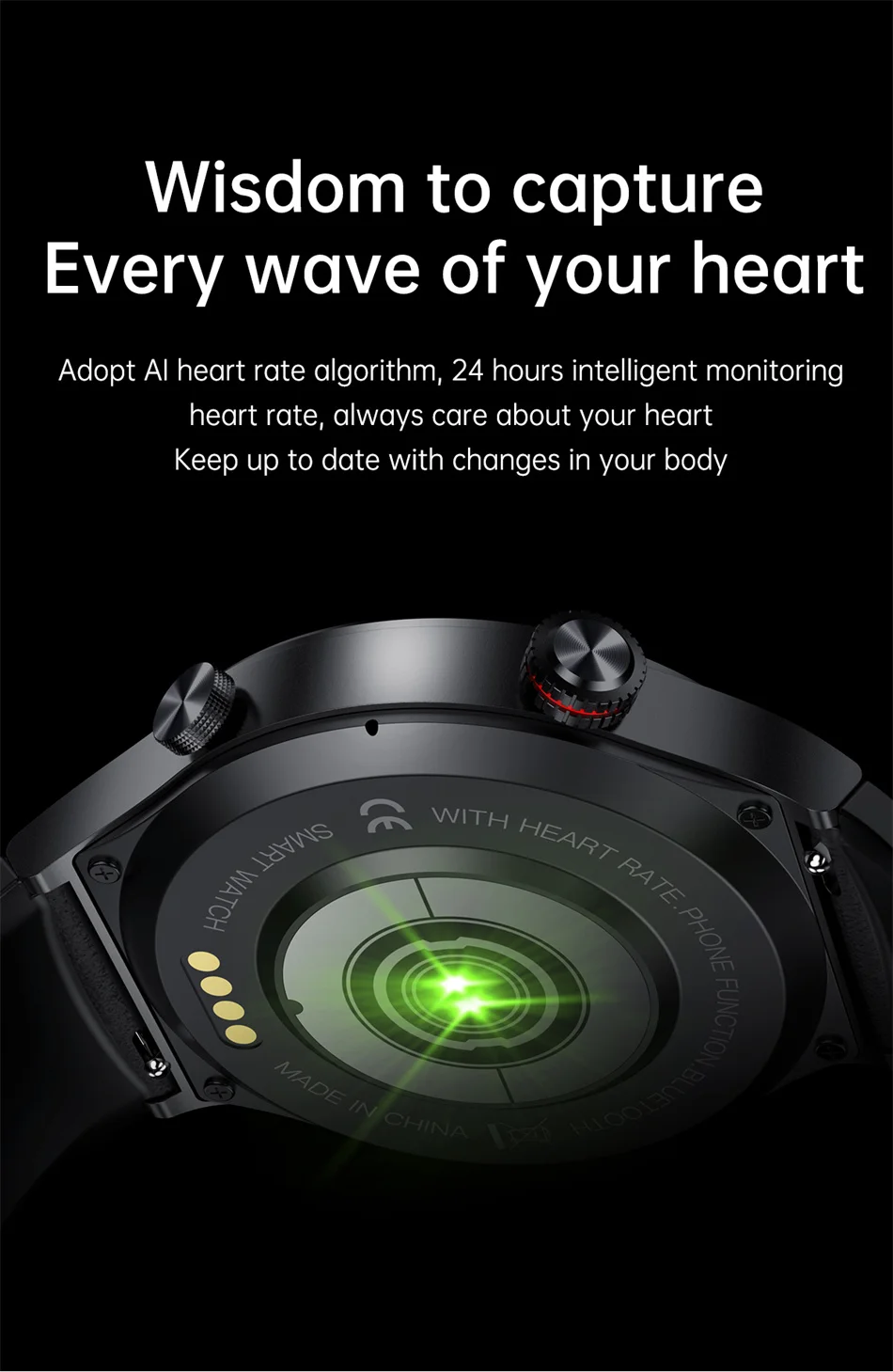 Adopt Al heart rate algorithm, 24 hours intelligent monitoring